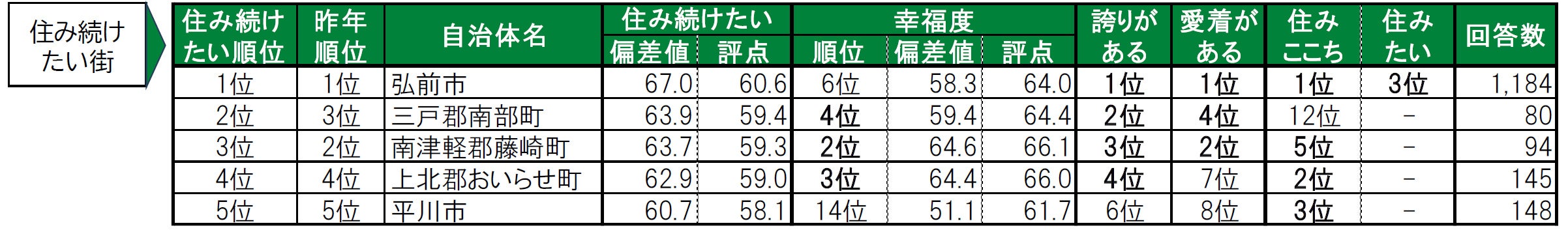 いい部屋ネット「街の幸福度 & 住み続けたい街ランキング2024<青森県版>」(街の住みここちランキング特別集計)発表