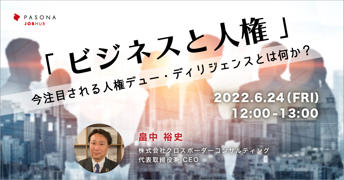 パソナJOB HUB主催 オンラインセミナー 『ビジネスと人権』6月24日開催~今注目される人権デュー・ディリジェンスとは何か?~