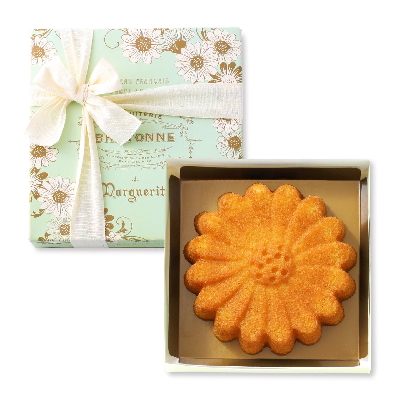 発酵バターのコクと香ばしいアーモンドを合わせた風味豊かな生地に、甘く華やかなバニラの香りが重なり合う、贅沢な美味しさのケーク。「誠実」「心に秘めた愛」「真実の友情」などを花言葉に持つ、可愛らしいマーガレットの形に焼き上げました。きめ細やかでしっとりとした食感と、シンプルながら奥深い味わいは、大切な方への贈り物やブライダルギフトにもおすすめです。