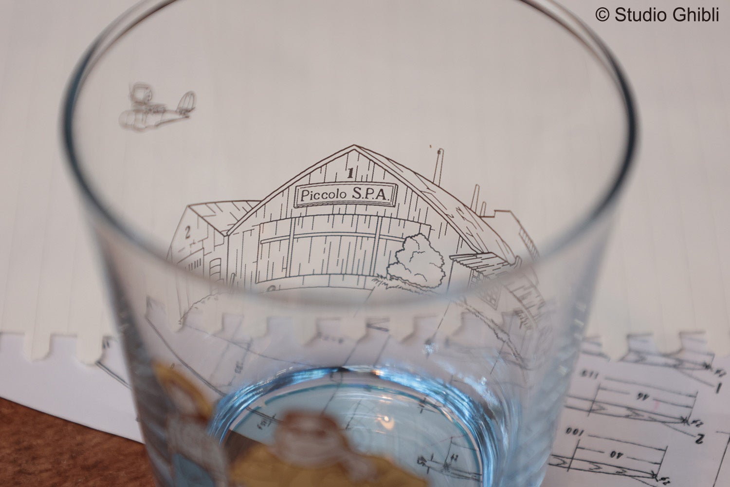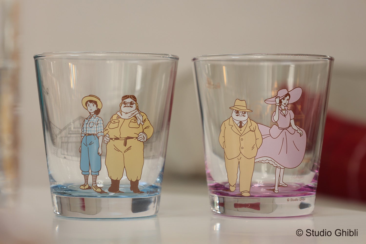 「紅の豚」のロマンチックなストーリーを想起させるようなグラデーションが美しい、全2種のグラスが発売となります。ポルコとフィオがデザインされた「運命の賭け」には、背面にシルバーの罫線でピッコロ社が描かれ、底面はフィオの洋服をイメージした水色のグラデーション加工が施されています。ポルコとジーナの「長い賭け」には、ゴールドの罫線でホテルアドリアーノが描かれ、底面にはジーナのドレスをイメージした紫色のグラデーション加工が施されています。ふたりのパートナーをイメージした、ロマンチックな対のグラスです。