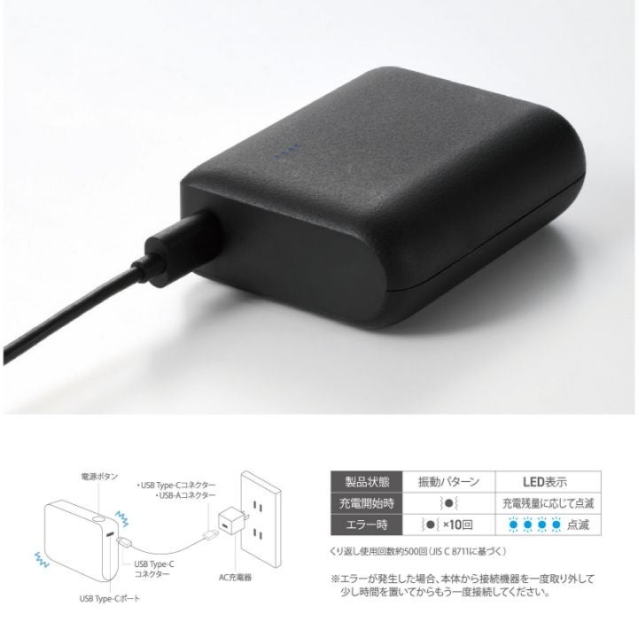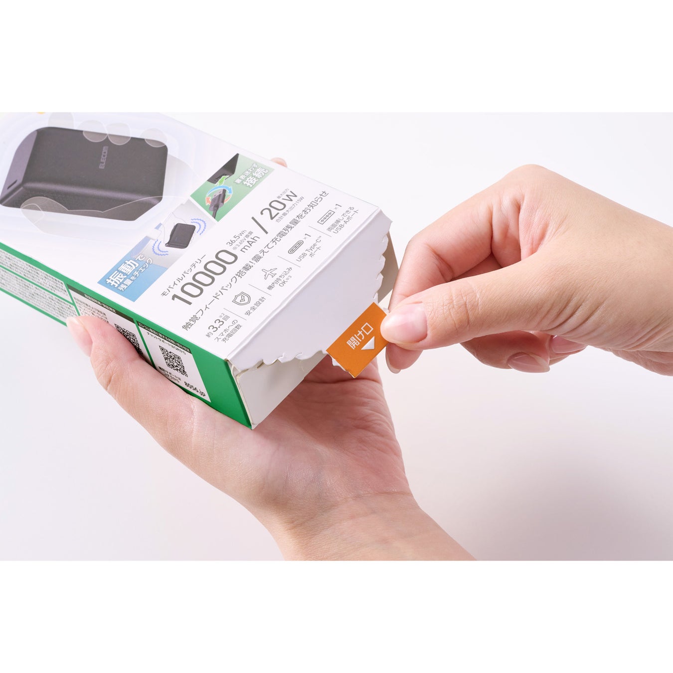 本製品はより多くの方が、便利に、快適に製品を使えるよう、視覚に障害のある方と共創した、エレコムで初となるインクルーシブデザインの製品です。電池残量や充電状況を示すLEDが見づらい方へ、振動してお知らせ。ボタンやUSBポートの位置も触覚で分かり、手元を見ずに触るだけでどんな場面でもスムーズに操作できます。モバイルバッテリーとしての機能性は、これまで開発してきたモバイルバッテリーと同様に、使いやすさと安全性を両立。USB Type-C(TM)(USB-C(TM))ポート・USB-Aポートを搭載し、1日外出する際にも安心して使える10,000mAhモデルです。