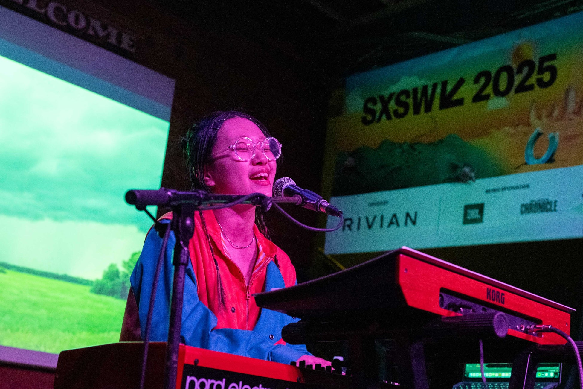 ネオン輝く東京の街が目に浮かぶ大人な空間から一変、京都出身のシンガーソングライター・luvisのサウンドが、オースティンに春の訪れを知らせるかのように爽やかな風を吹かせた。未発表曲「gimme! (jugem)」では、サビの“gimme! gimme! gimme!”のパートでオーディエンスの声をその場でレコーディングした。(後日リリース予定)