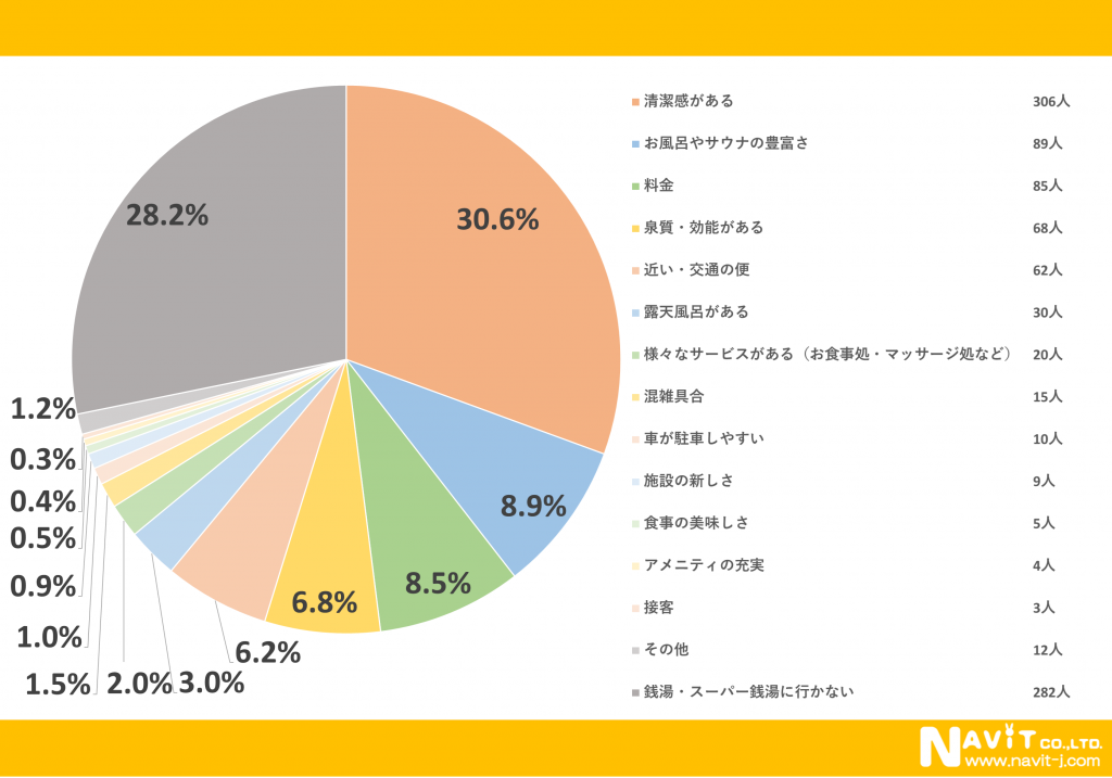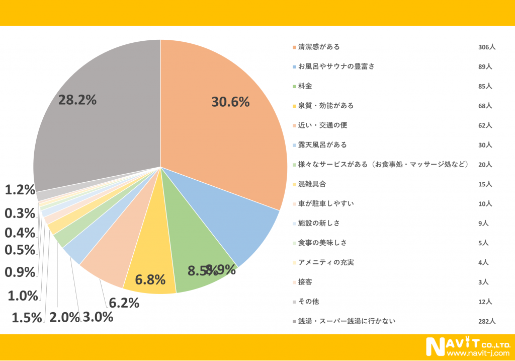 銭湯・スーパー銭湯で最重視することは、「清潔感がある」が最多