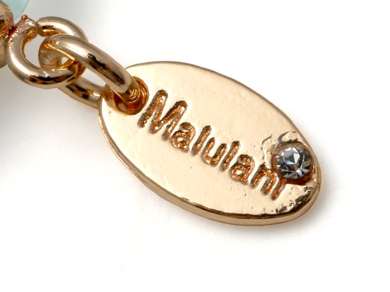水晶とオリジナルチャームには、ハワイ語で「神に護られた」という意味を持つ「malulani」と刻印。 持つ人に「神のご加護がありますように」との祈りをのせています。