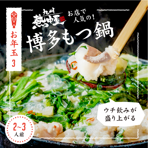 スープは全国に40店舗以上展開する、もつ鍋が自慢の九州料理店「九州熱中屋」で一番人気の特製スープをご用意。