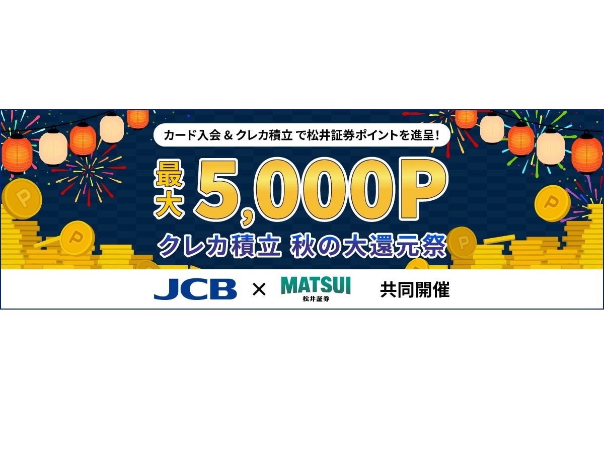 【JCB×松井証券共催】クレカ積立 秋の大還元祭を開催 先着5,000名様限定で、松井証券ポイント最大5,000P獲得のチャンス!
