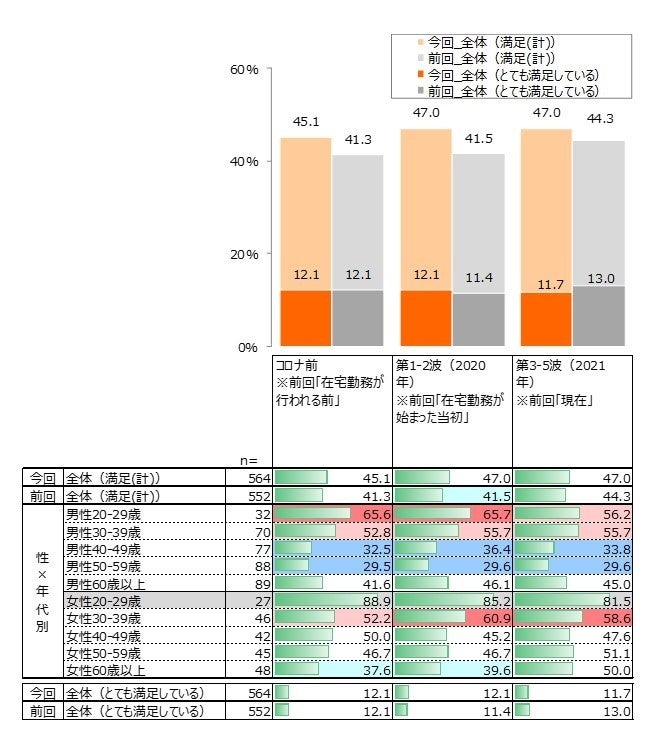 調査対象 :2021年の新型コロナウイルス感染症の拡大を受けた緊急事態宣言中に、在宅勤務を経験した三大都市圏(東京都、神奈川県、千葉県、埼玉県、愛知県、大阪府、京都府、兵庫県)の20歳以上の男女
