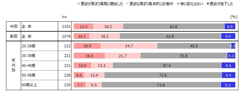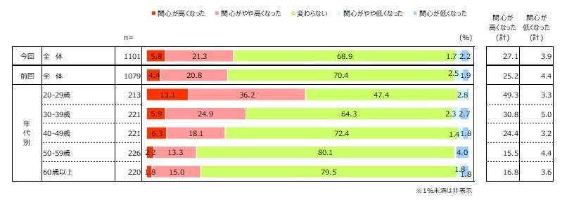 特に20代では関心が高まった割合が合計で49.3%と半数近くに達した。