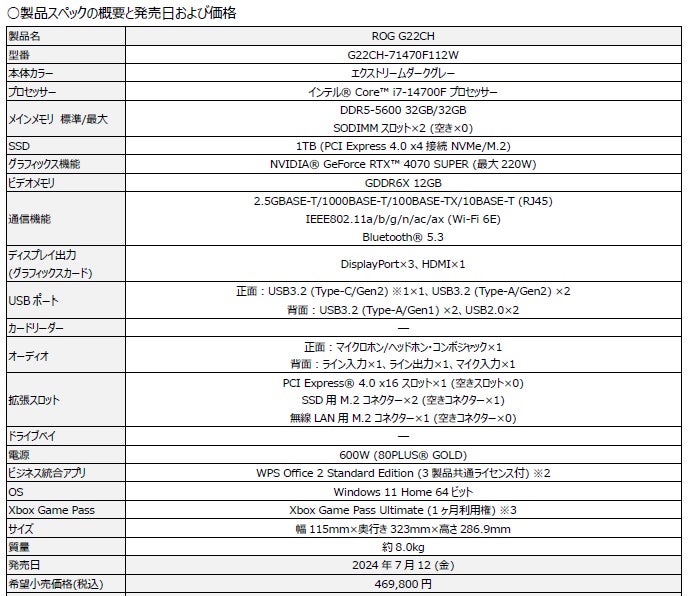 ASUS JAPAN株式会社は、10Lという超小型かつ、高負荷なゲームも最高のグラフィック設定でプレイできる性能を備えゲーミングデスクトップPC「ROG G22CH」を発表しました。本日より予約を開始し、7月12日(金)より発売を開始します。