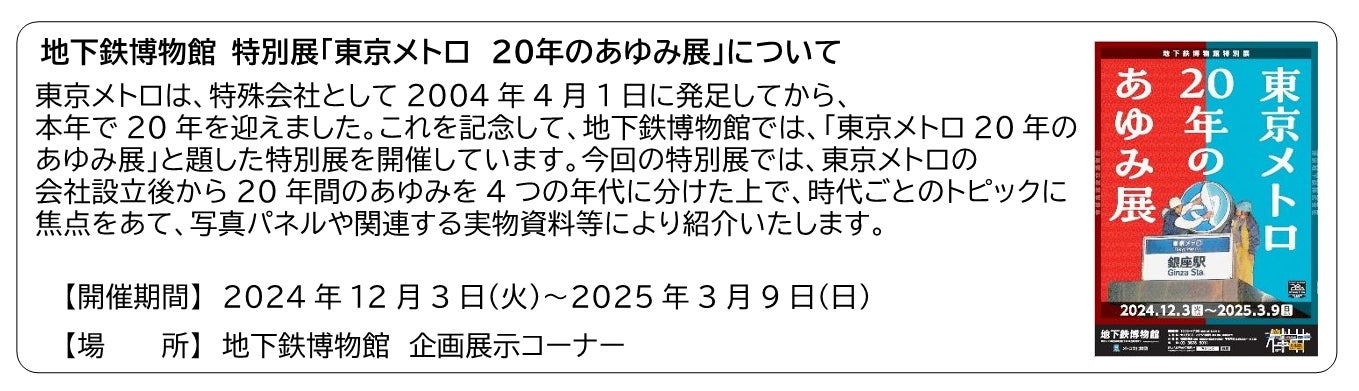 ※地下鉄博物館では「東京メトロ 20年のあゆみ展」の他の展示物もごゆっくりご鑑賞ください。