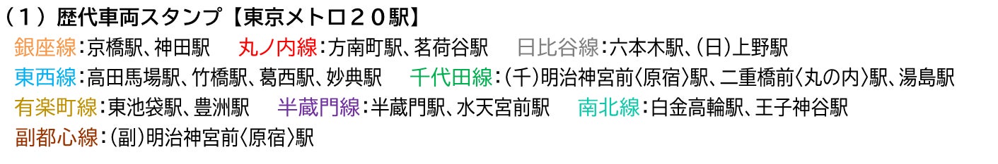 ※各スタンプの設置場所(詳細)については、東京メトロ公式ホームページ(「メトロで楽しむ」コーナーhttps://www.tokyometro.jp/enjoy/event/index.html)よりご確認ください。