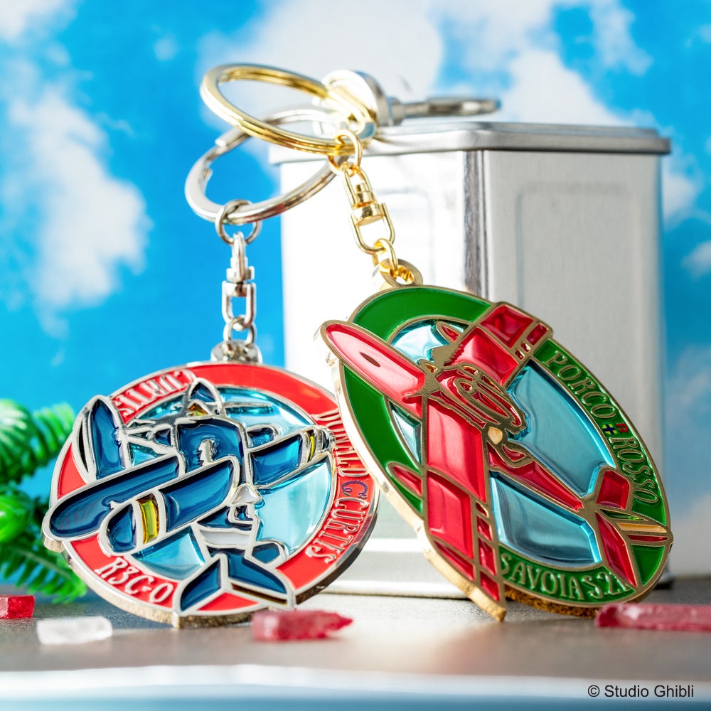 ポルコとカーチスの飛行艇を透け感のあるステンドグラス風にデザインしたキーリングです。見た目よりも軽量で、愛車の鍵とあわせて使用するのもおすすめです。