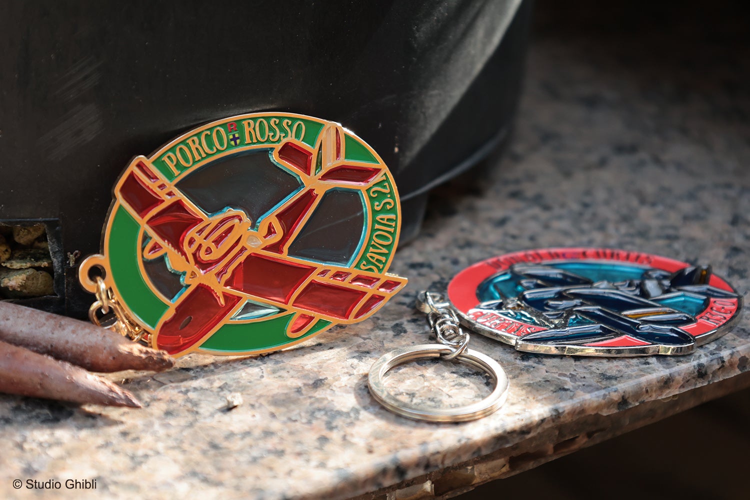 キャンペーン開催にあわせ、ジブリがいっぱい どんぐり共和国では、紅の豚にフォーカスしたさまざまな新商品を発売いたします。ポルコの"サボイアS-21"やマンマユート団の"ダボハゼ"など、飛行艇乗り達の愛機が全6種のミニチュアサイズのマグネットになった「飛行艇コレクション」や、飛行艇をステンドグラス風にデザインした、愛車の鍵をつけるのにぴったりな「ステンドグラスキーリング」、マンマユート団・空賊連合とフィオとの記念写真をデザインした、スカーフとしても着用できる「大判ハンカチ」など、30周年を記念するアイテムが揃います。