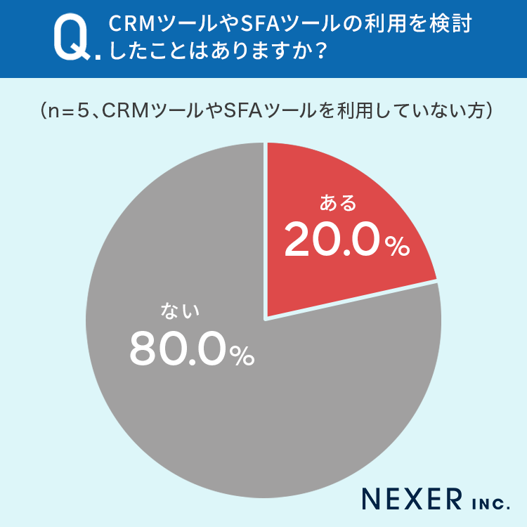 20%の方が、CRMツールやSFAツールの利用を検討したことが「ある」と回答しています。