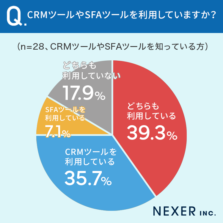 「どちらも利用している」が39.3%、「CRMツールを利用している」が35.7%、「SFAツールを利用している」が7.1%という結果になりました。
