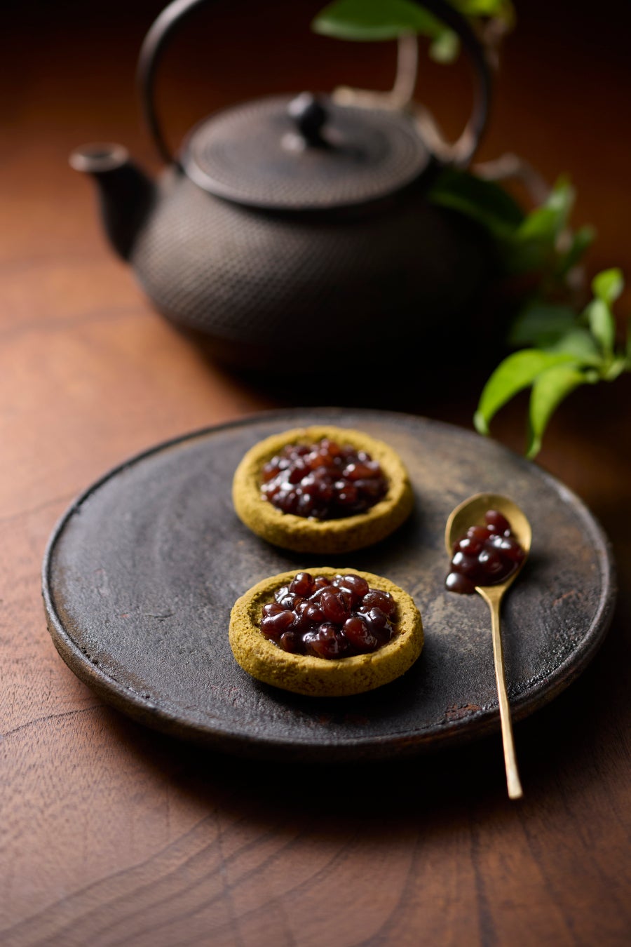 宇治抹茶「天緑」を使ったお濃茶サブレに、北海道産小豆餡を添えてお召し上がりいただく、新感覚スウィーツをご用意しました。