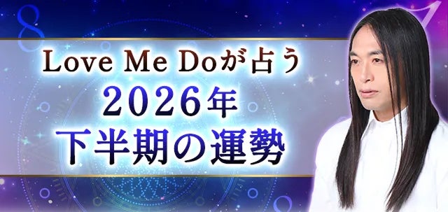 有名人の電撃婚など世間を騒がせるビッグニュースの予言が次々的中して話題沸騰の占い師Love Me Doの公式占いサイト『Love Me Do◆数秘術』は、この度「Love Me Doが占う2026年下半期の運勢」を公開いたしました。こちらはまだ当サイトへの会員として登録されていないお客様にもご自身の2026年下半期の運勢を占っていただけるページとなっています。