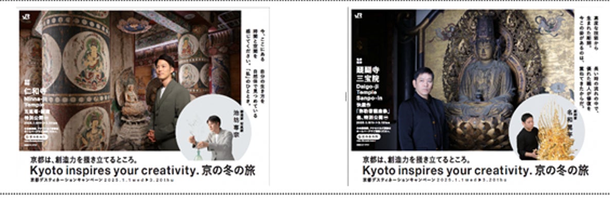 キャンペーン期間中、JRグループの主な駅・車内ポスターに、華道家・写真家の池坊専宗氏、 彫刻家の名和晃平氏にご出演いただき、京の文化の魅力をご紹介します。