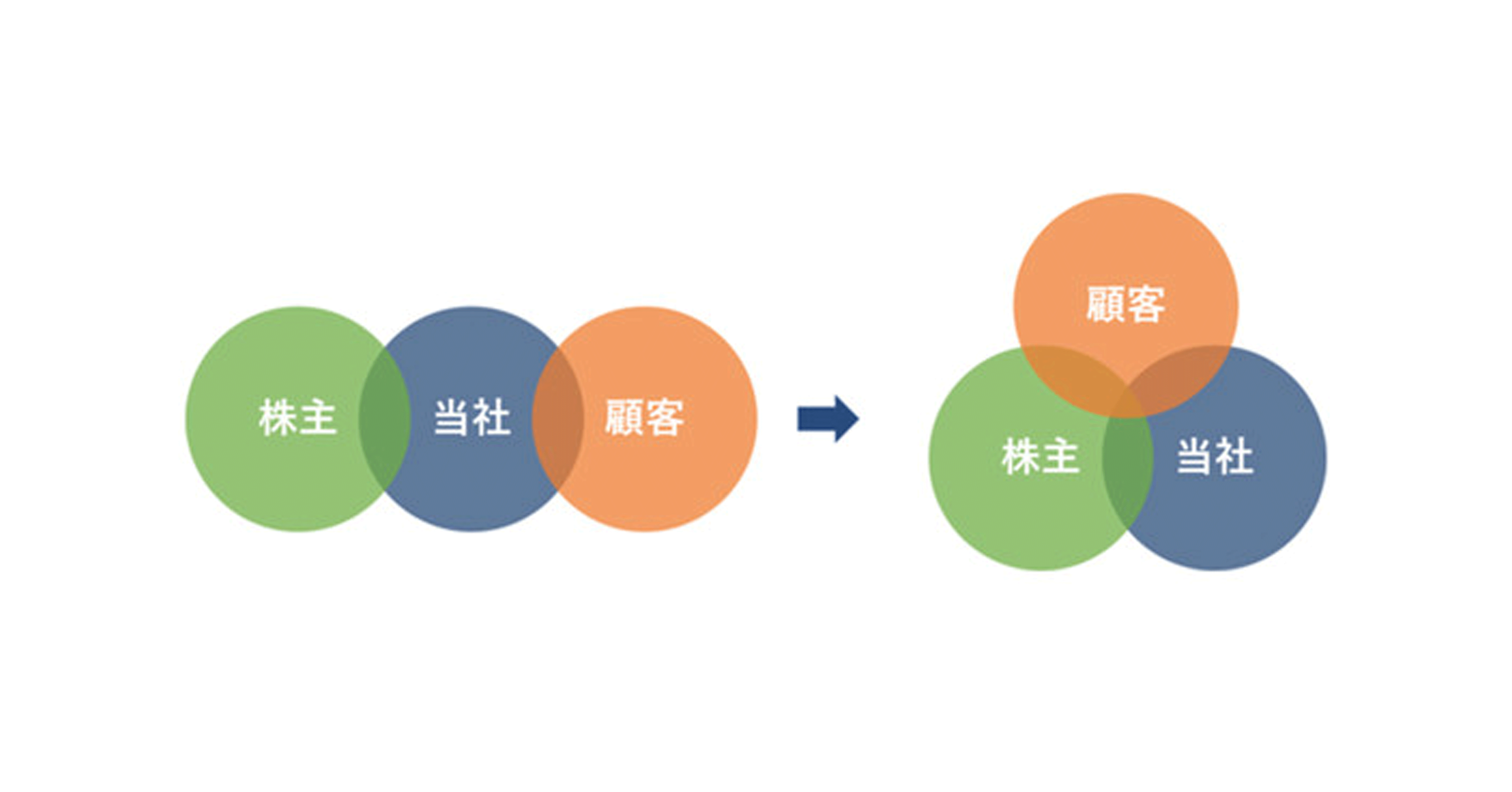 また、当社を媒介にステークホルダー同士が直接つながる機会をつくることは、ご利用企業と株主の双方に新たな出会いや関係深化をもたらし、社会と共に発展を目指すパブリックリレーションズの思想に沿うものと考えています。