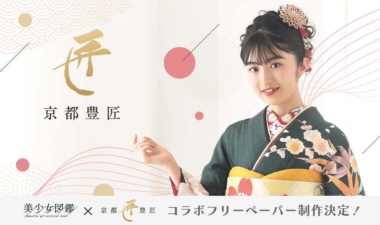 このたび『美少女図鑑』と京都で和装の製造卸を手掛ける株式会社京都豊匠との共同企画として制作・発行するフリーペーパーは、『美少女図鑑』モデルが自分達で振袖の柄選びや小物のコーディネートまでを行い、“新成人目線”で開発した振袖を着用するなど、和装ならではの魅力やトレンドにあわせた着こなし等を余すところなくお届けします。