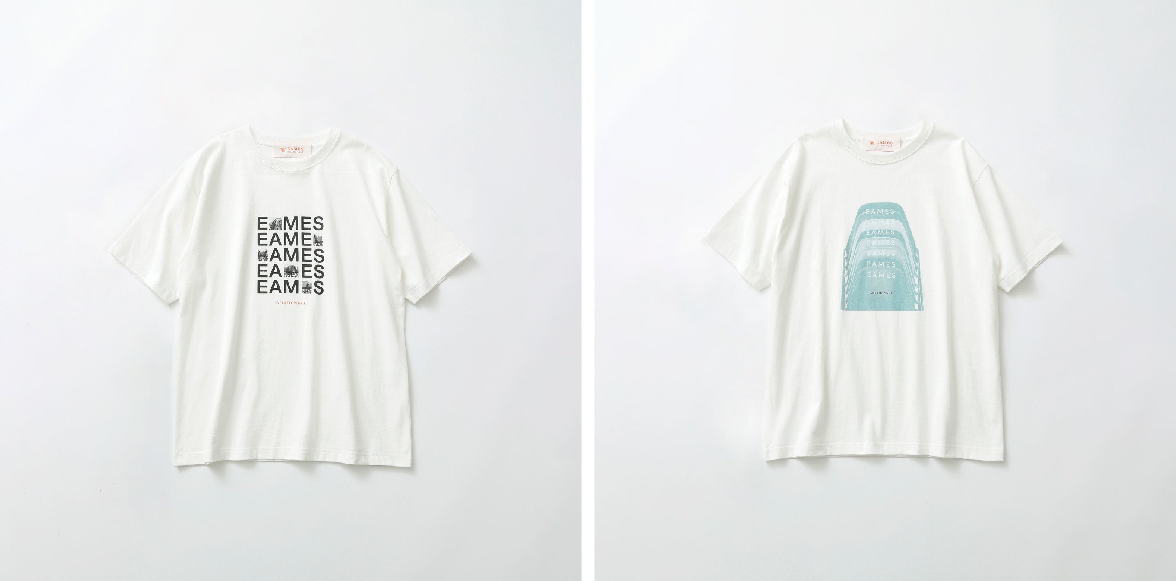 EAMES(イームズ)を代表するチェアやブランドロゴなどがアートなプリントで表現されたTシャツは、