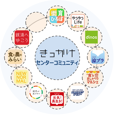 「きっかけ」は、産経新聞社とクオンが、共同で運営しているオンライン上のコミュニティです。ショッピングモールのようなイメージで発展していくのが特徴の1つで、「きっかけ」は、中心(センター)にある広場のような役目を果たしています。ユーザーはセンターコミュニティである「きっかけ」で、さまざまな会話やキャンペーンを楽しみながら、テナントにあたるクライアントの“パートナーコミュニティ”にも自由に参加、回遊し、コミュニケーションが活性化しています。