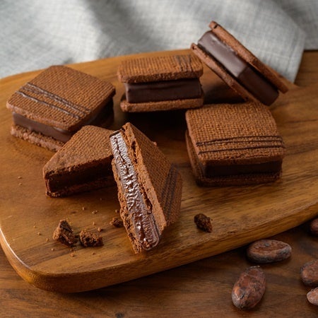 グルテンフリー、白砂糖不使用で同店人気No.1のロールケーキと、口どけの良いチョコレートガナッシュを米粉のクッキーに挟んだサンドクッキー。