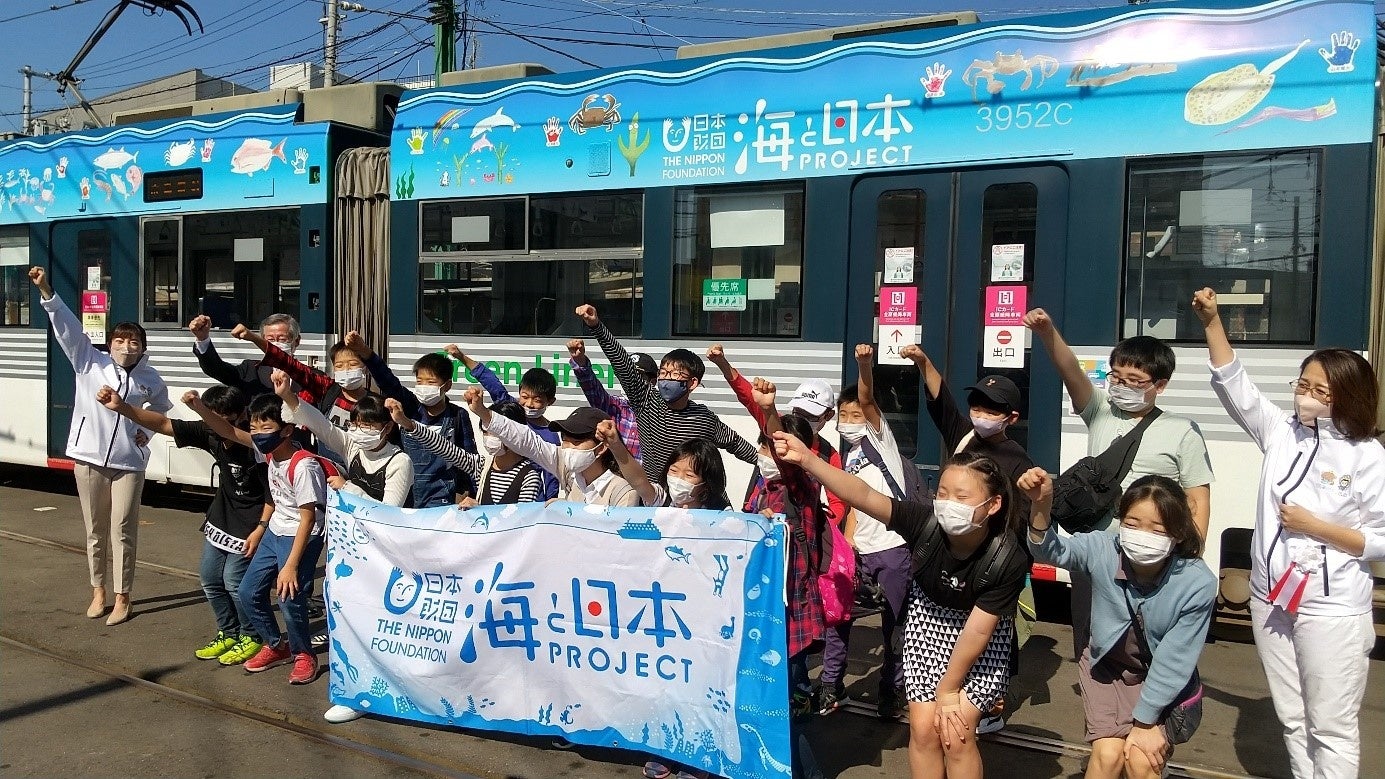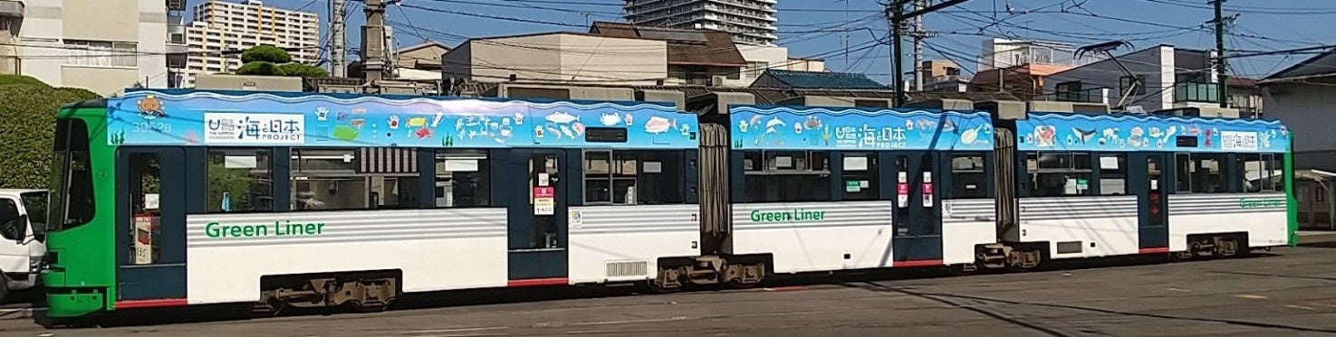 この度その成果発表の場となる広島電鉄ラッピング特別電車『海と日本プロジェクト号』の運行を開始しました。この特別な電車は11月14日までの約1カ月間、広島市内と世界遺産厳島神社のある宮島へ向かう路線で通常運行されます。
