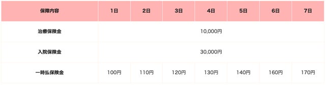本保険は、熱中症リスクに特化した保険業界初の保険商品(※7)として、2022年から毎年期間限定で(※8)提供している保険商品です。本保険に加入したユーザーが、保険期間中に日射または熱射により障害を被り、病院などで医師により点滴治療を受けた場合、治療保険金や、継続した2日(1泊2日)以上の入院をした際の入院保険金支払われます。