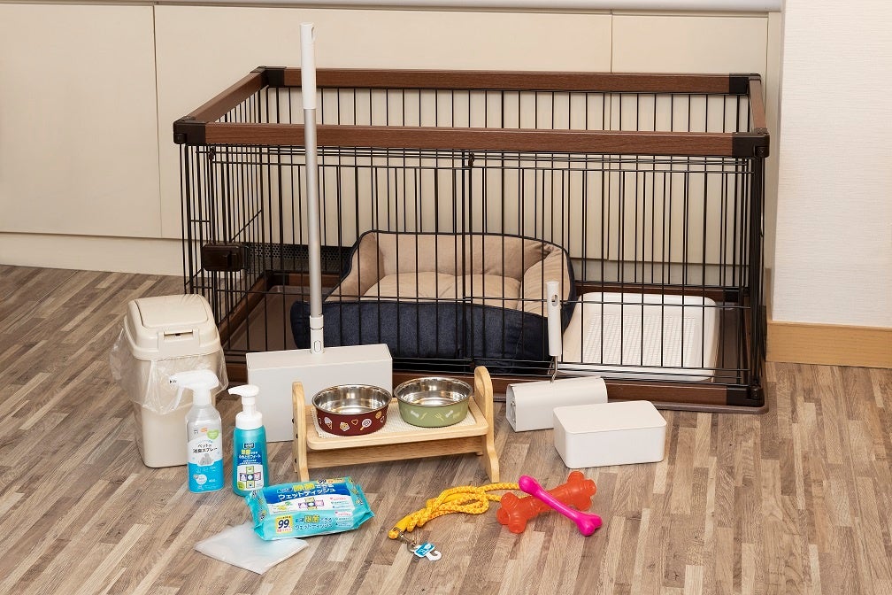 客室内には、ケージ、ワンちゃん用ベッド、おもちゃ、食器、除菌ウエットシートなど、ワンちゃん用のアメニティも充実。安心してご自宅のようにお寛ぎいただけます。