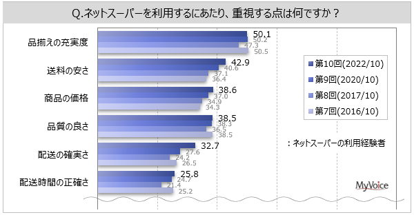 - ネットスーパー利用時の重視点