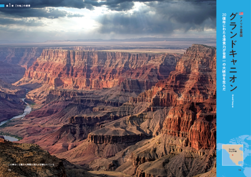 か存在していなかった。当時の大陸の深部にあった岩石が基盤となってできたのがグランドキャニオンである。世界遺産に登録されている人気の観光スポット、グランドキャニオンでは約450㎞(東京〜大阪間以上)にわたり、多くの段丘を持つ赤茶色の大峡谷が続く。切り立った断崖は非常に深く、平均で約1200m、最深部はなんと約1800mにも達する。では、グランドキャニオンはどのようにつくられたのか?