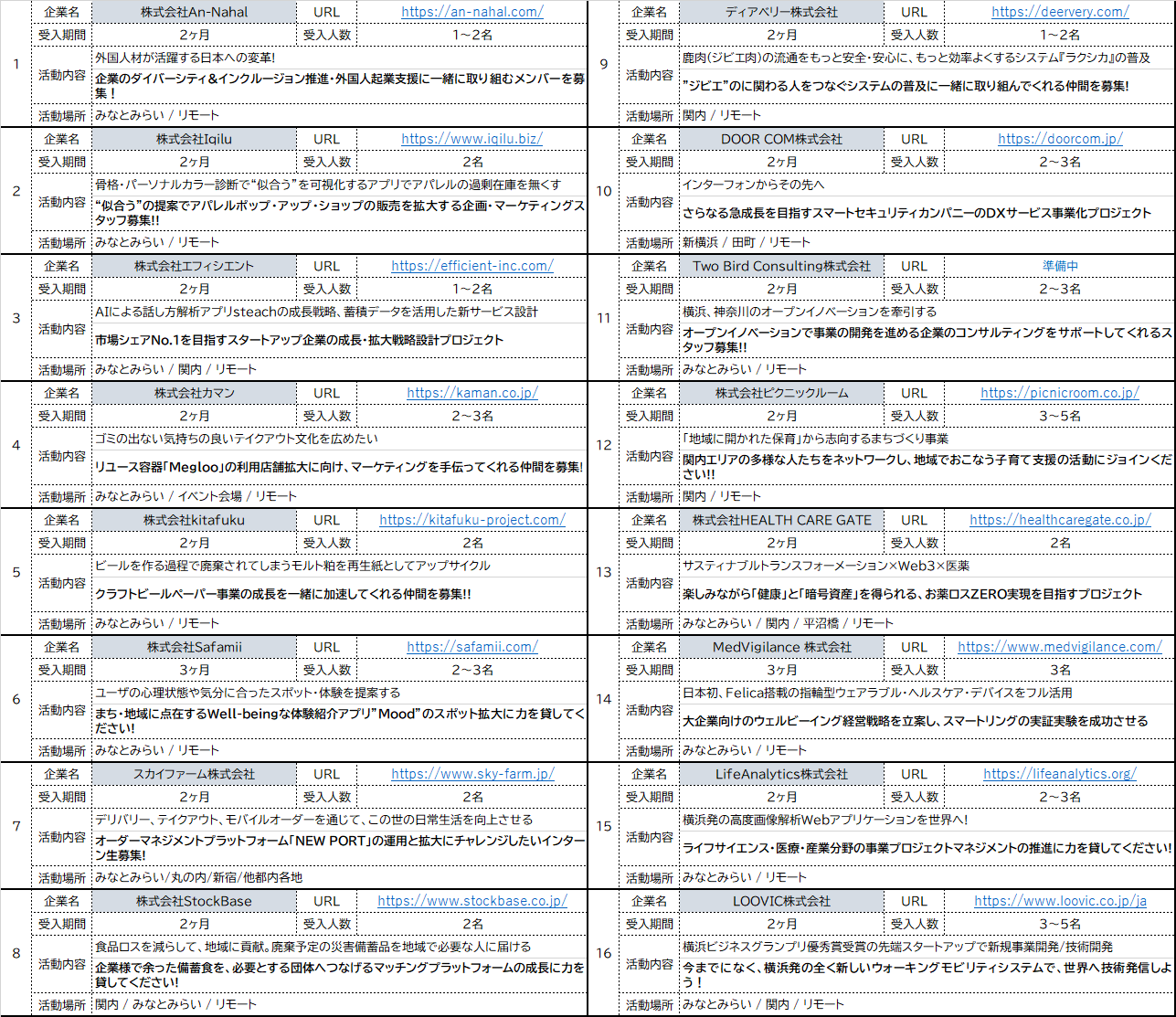 受け入れ企業各社の募集要項は、以下のサイトより閲覧いただけます。