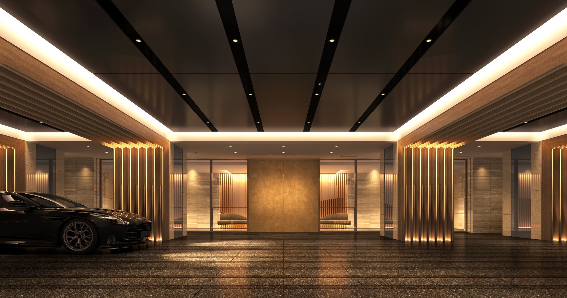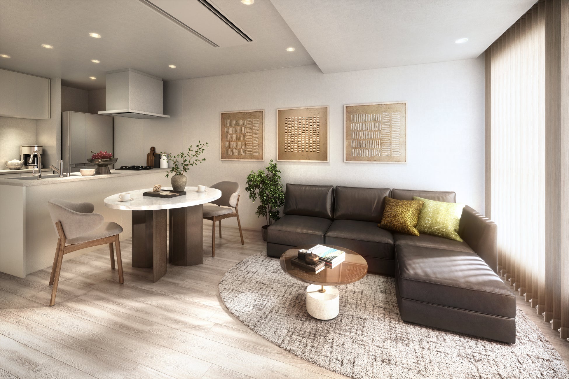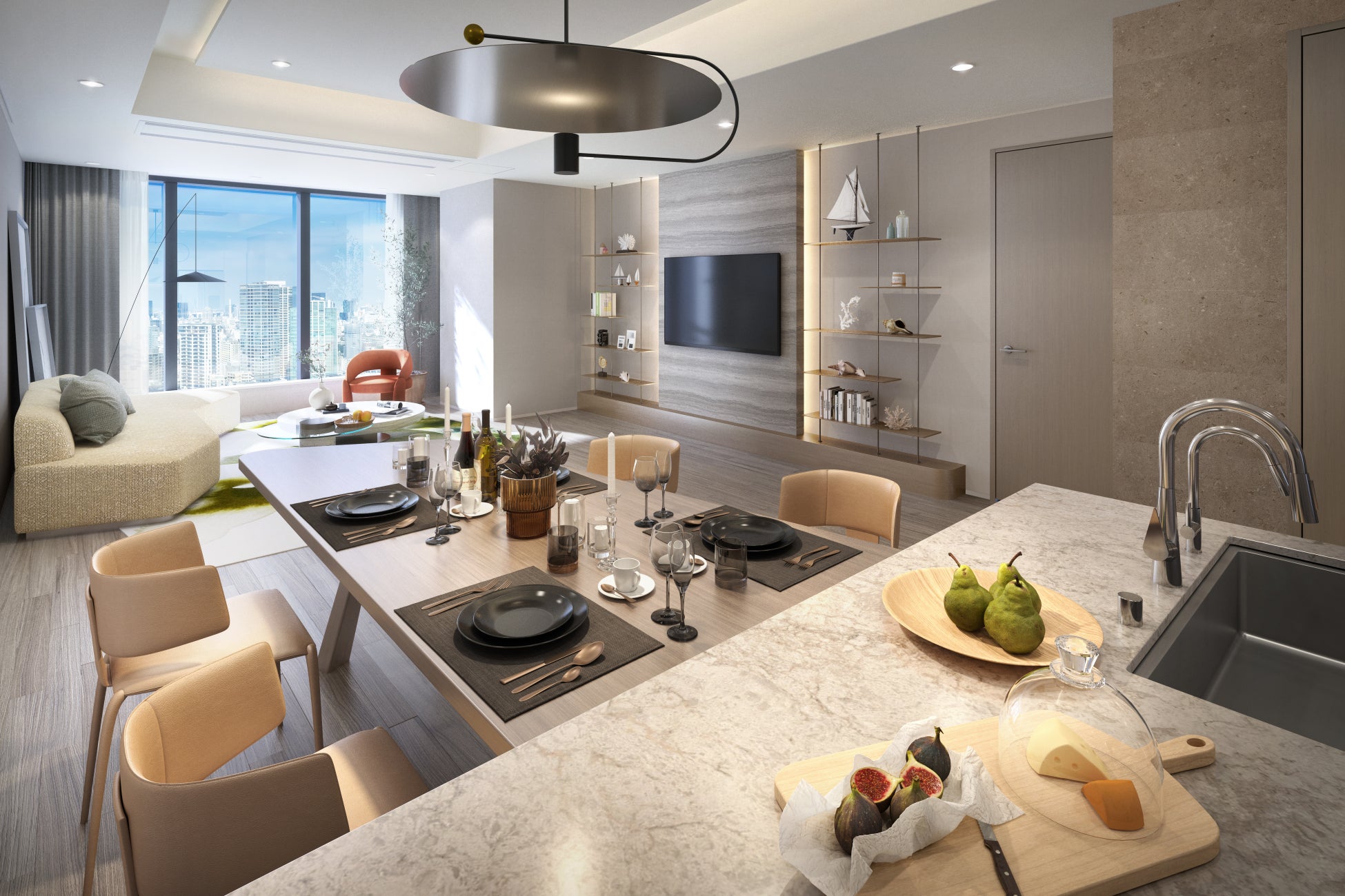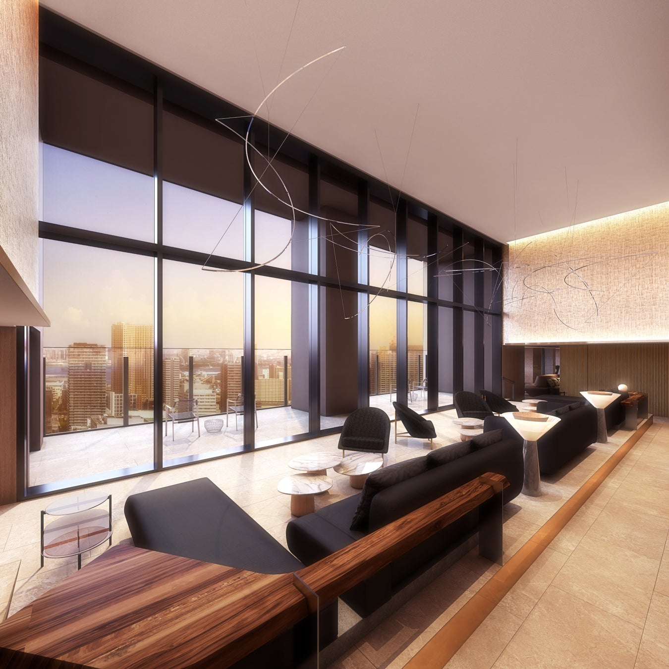 内装デザインはHBA(ハーシュ・べドナー・アソシエイツ)株式会社が監修。優雅なラウンジや天空のコミュニティ空間には、光の差し込み方や素材の陰影を繊細に重ね、多層的なアプローチによって重厚さの中に軽やかさをも共存させました。凛とした気配とやわらかな奥行きが調和する、気品あふれるラグジュアリーな空間をしつらえています。