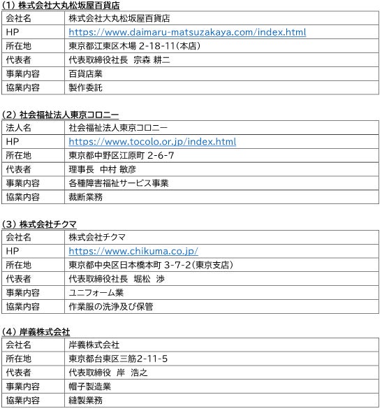 ・モノ創りの過程も大切に考え、作業服の裁断については、都内の障がい者の方々が就労されている社会福祉法人東京コロニーにご協力いただきました。