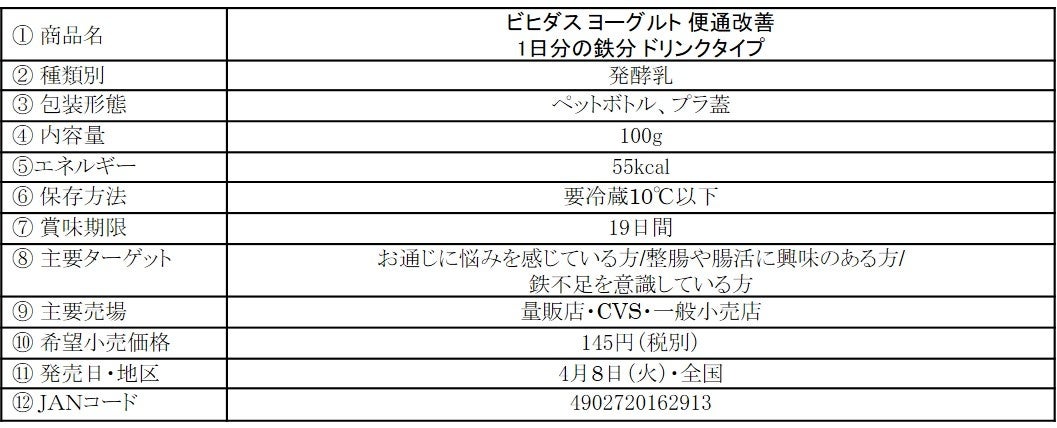 1日分の鉄分※1が摂れる!「ビヒダス ヨーグルト 便通改善 1日分の鉄分 ドリンクタイプ」4月8日(火)より全国で新発売