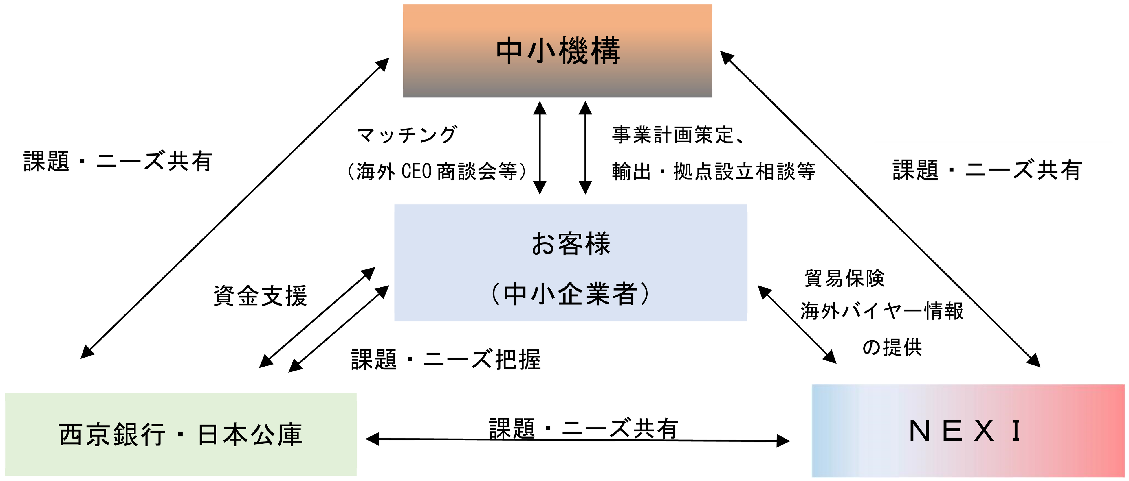 「海外ビジネス支援パッケージ」で西京銀行、NEXI、日本公庫及び中小機構が連携を開始