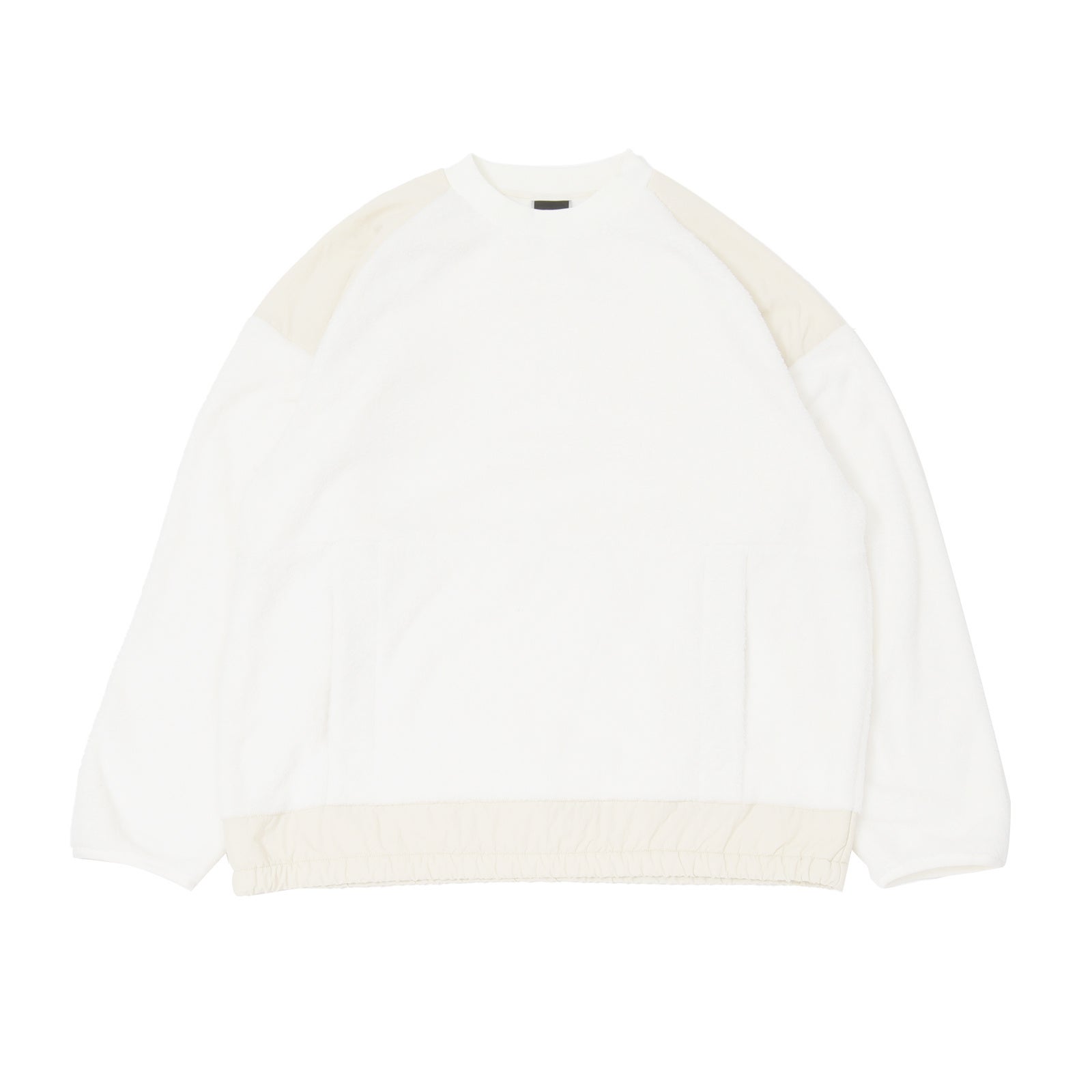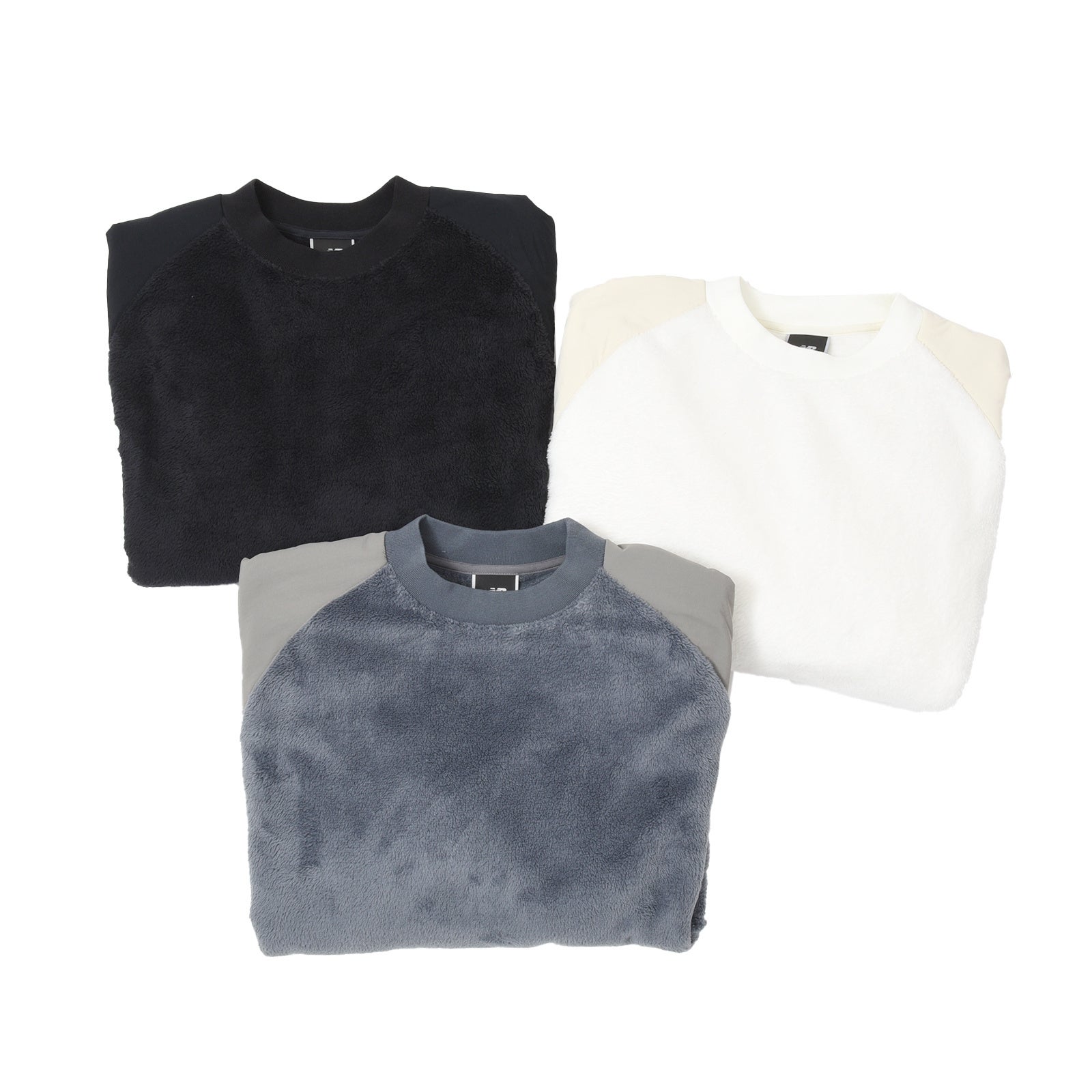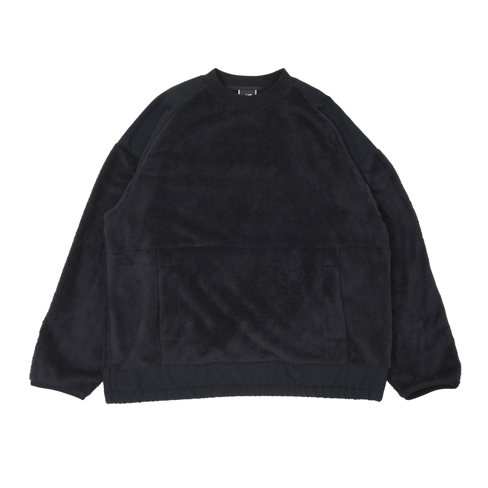 ミドラーでもアウターでも着回せる生地感とデザインのストレートで短い毛足のソフトな風合いのボアフリースとナイロン素材の異素材使いが特徴。ユニセックスで着られるサイズ展開でゆったり着られるリラックスシルエットです。プルオーバーと、トレーニングパンツはセットアップが可能です。