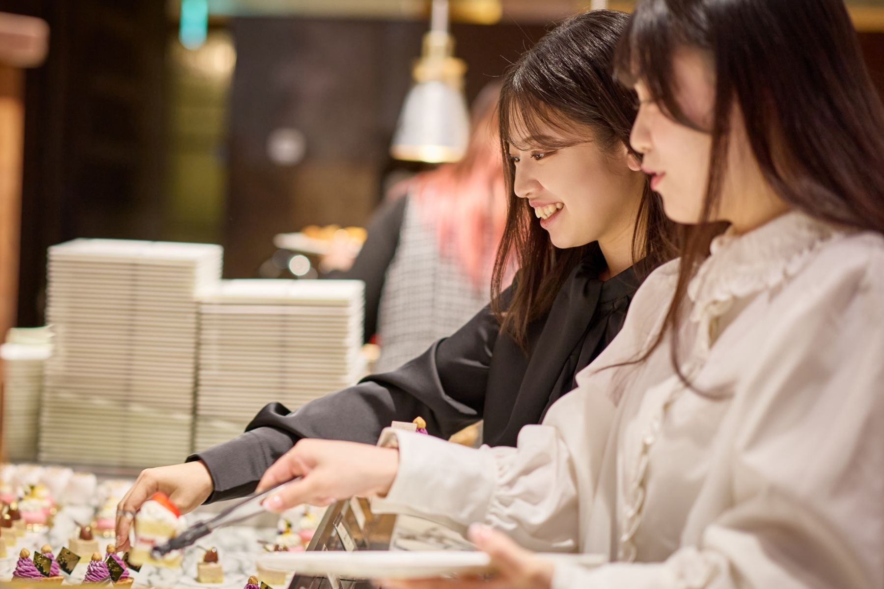スイーツは、旬の苺や濃厚なチョコレートを使用した華やかで可愛らしい11種類をご用意。苺のジュレや苺のムース、苺のバトンパイなど華やかで見た目も印象的な魅力的な苺スイーツ、ガトーショコラやチョコレートパンナコッタなどチョコ好きにはたまらない種類豊富なデザートを心ゆくまでご堪能いただけます。また、愛媛産温州みかんシャーベットや瀬戸内レモンシャーベットなどのご当地フレーバーを含む8種のアイスクリームと11種のトッピングは、お好みに合わせて自由にアレンジができ、お子様から大人まで楽しめて食後にぴったりなアイスコーナーをご用意いたしました。