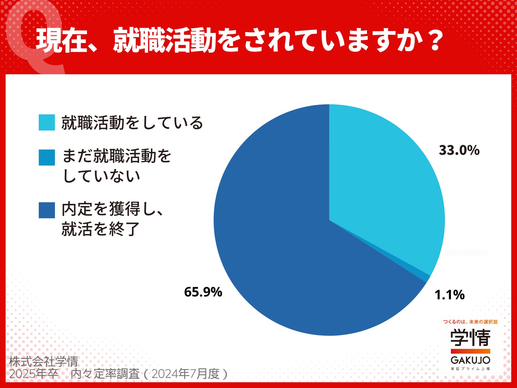 (3)就職活動中の学生は「33.0%」。約7割の学生が、“内々定を獲得し、就活を終了”