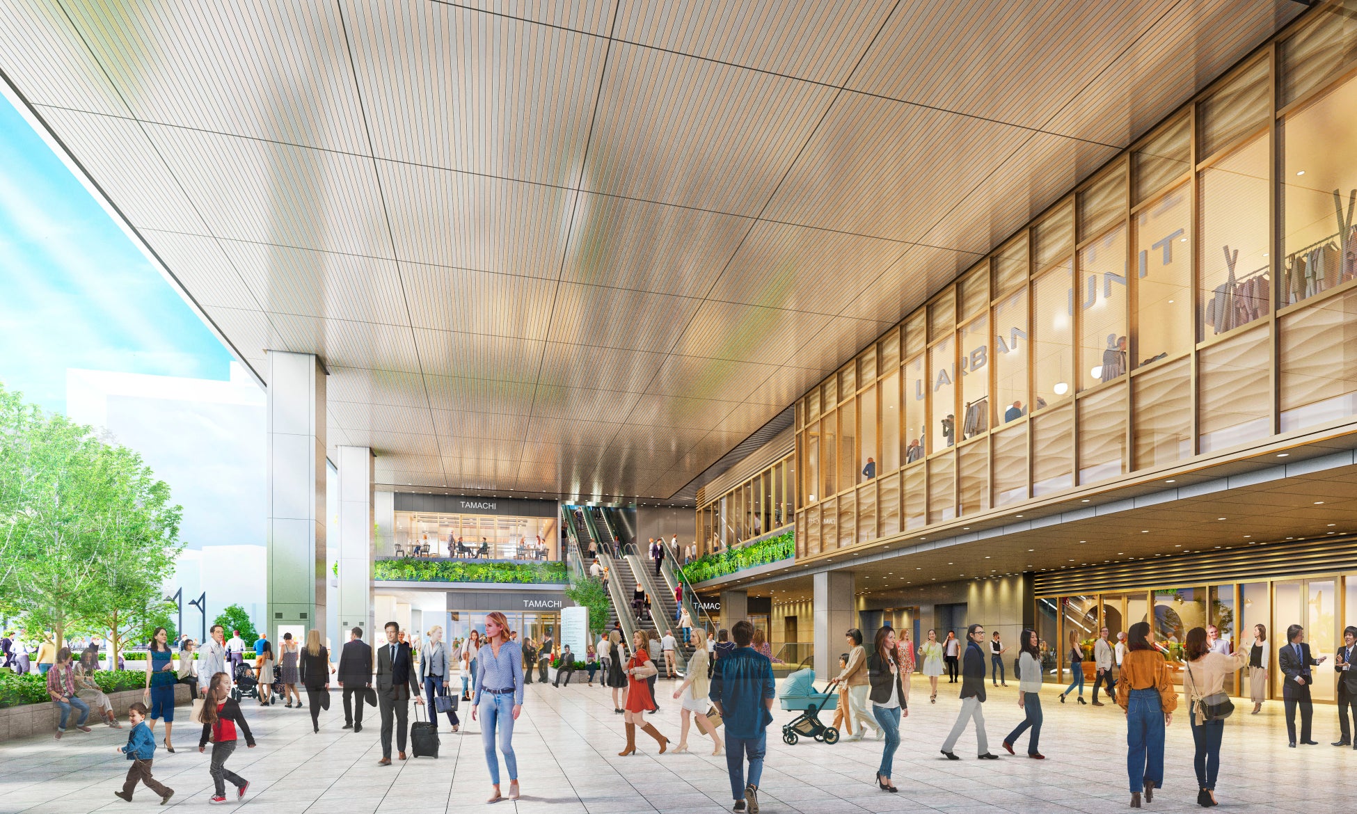 1階~3階にはJR東日本グループの株式会社アトレが運営する商業施設がオープン予定です。オフィスワーカーや一般来街者の日常の生活を彩る店舗が集まり、田町・三田エリアにさらなる街の賑わいを提供します。