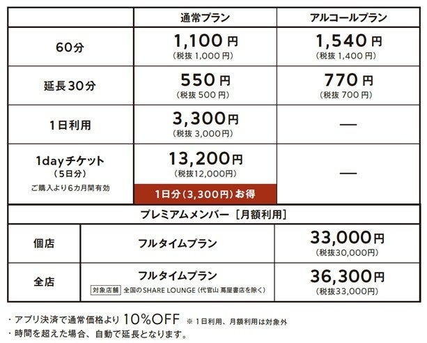 - <SHARE LOUNGE利用料金>