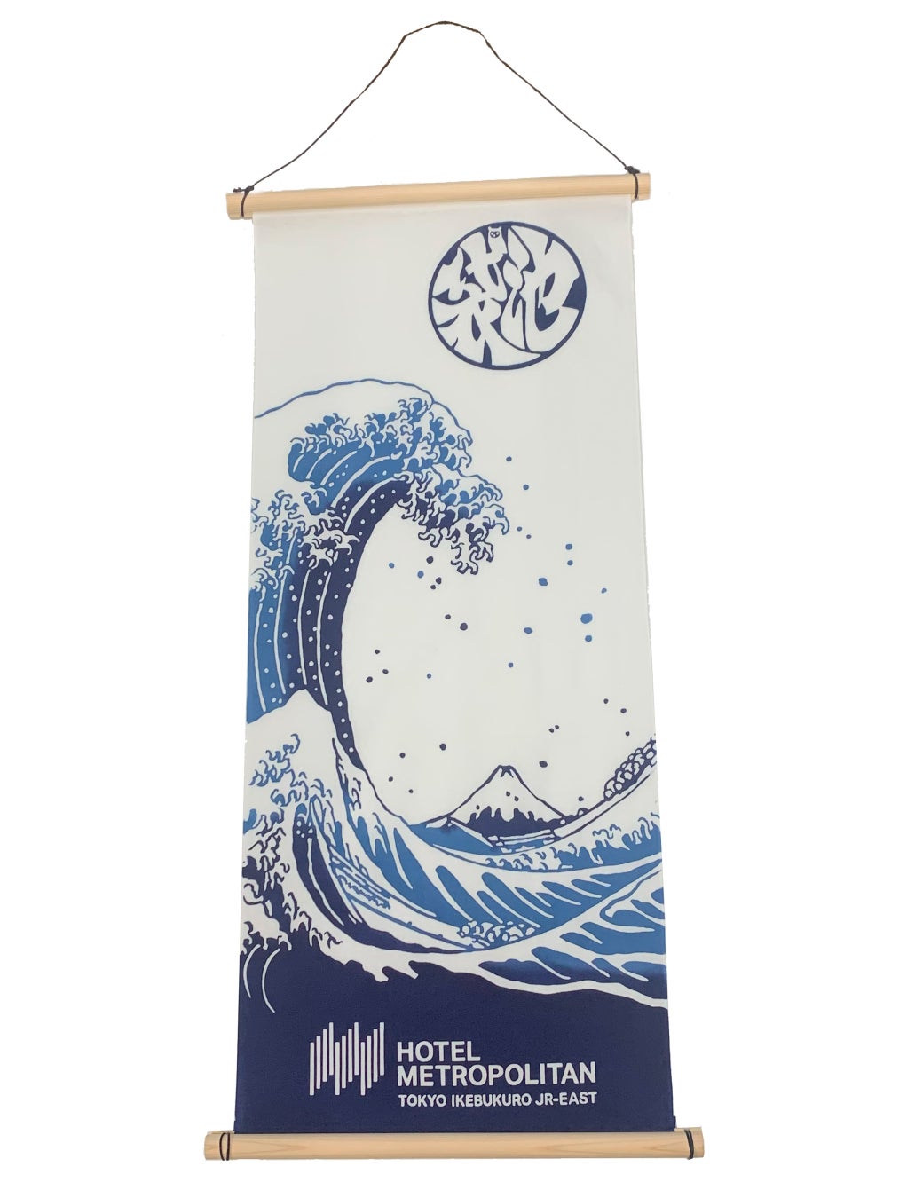 ホテルメトロポリタン(豊島区西池袋1-6-1 総支配人 伊藤茂夫)では葛飾北斎による冨嶽三十六景の代表作「神奈川沖浪裏」をモチーフにした手ぬぐいを販売いたします。制作は伝統文化を守りつつ新しいものをつくる日本橋老舗染物店の梨園染・戸田屋商店へ依頼。総支配人自ら手掛けた袋文字の池袋にはふくろうをポイントに入れるなど池袋らしさを表現いたしました。手ぬぐいは、古くから日本人の生活必需品として使われてきました。吸収性に優れ乾きも早く、雑菌が溜まりにくいので衛生的です。普段使いやお土産にも最適な一品です。また香りがやさしい木曾ひのきのタペストリー棒を使ってお部屋のインテリアとしてもお楽しみいただけます。