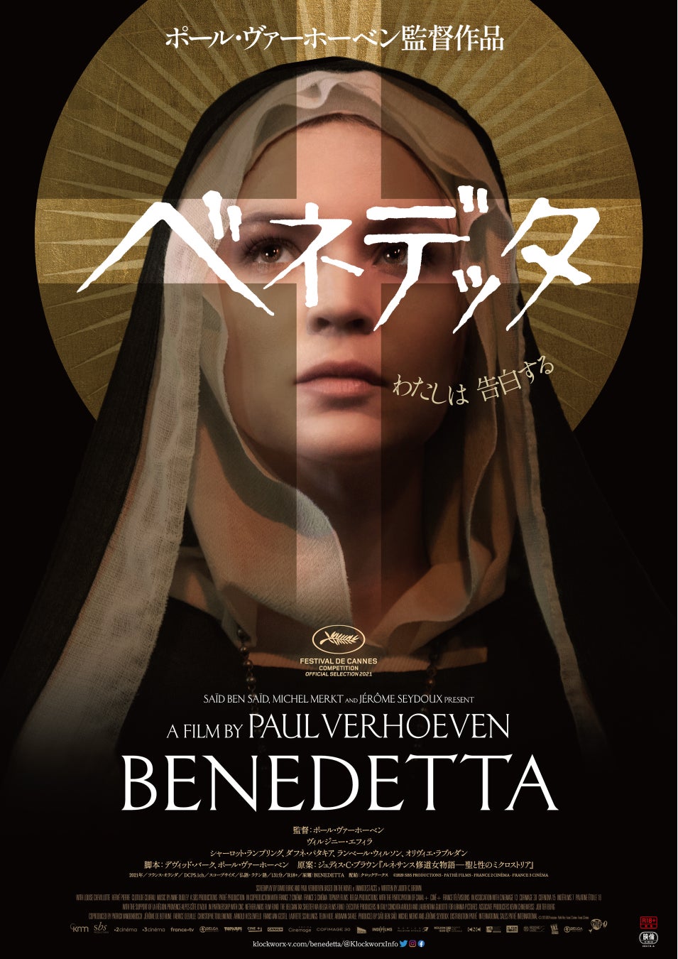 幼い頃からキリストのビジョンを見続け、聖痕や奇蹟を起こし民衆から崇められた一方、同性愛の罪で裁判にかけられたベネデッタ・カルリーニ。男性が支配する時代に権力を手にした彼女がおこした奇蹟は本物か、はたまた狂言か。主演は『エル ELLE』にも出演しているヴィルジニー・エフィラ。更に世界的大女優シャーロット・ランプリングがベネデッタに疑惑の目を向ける修道院長を演じ、「この映画に出演しない理由が見当たらない」と出演理由を述べている。