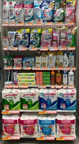 このたび、洗濯用洗剤やトイレットペーパーなど過去最大の40アイテムを「挑戦価格」にするとともに、まとめて陳列することで分かりやすい売場を実現いたしました。