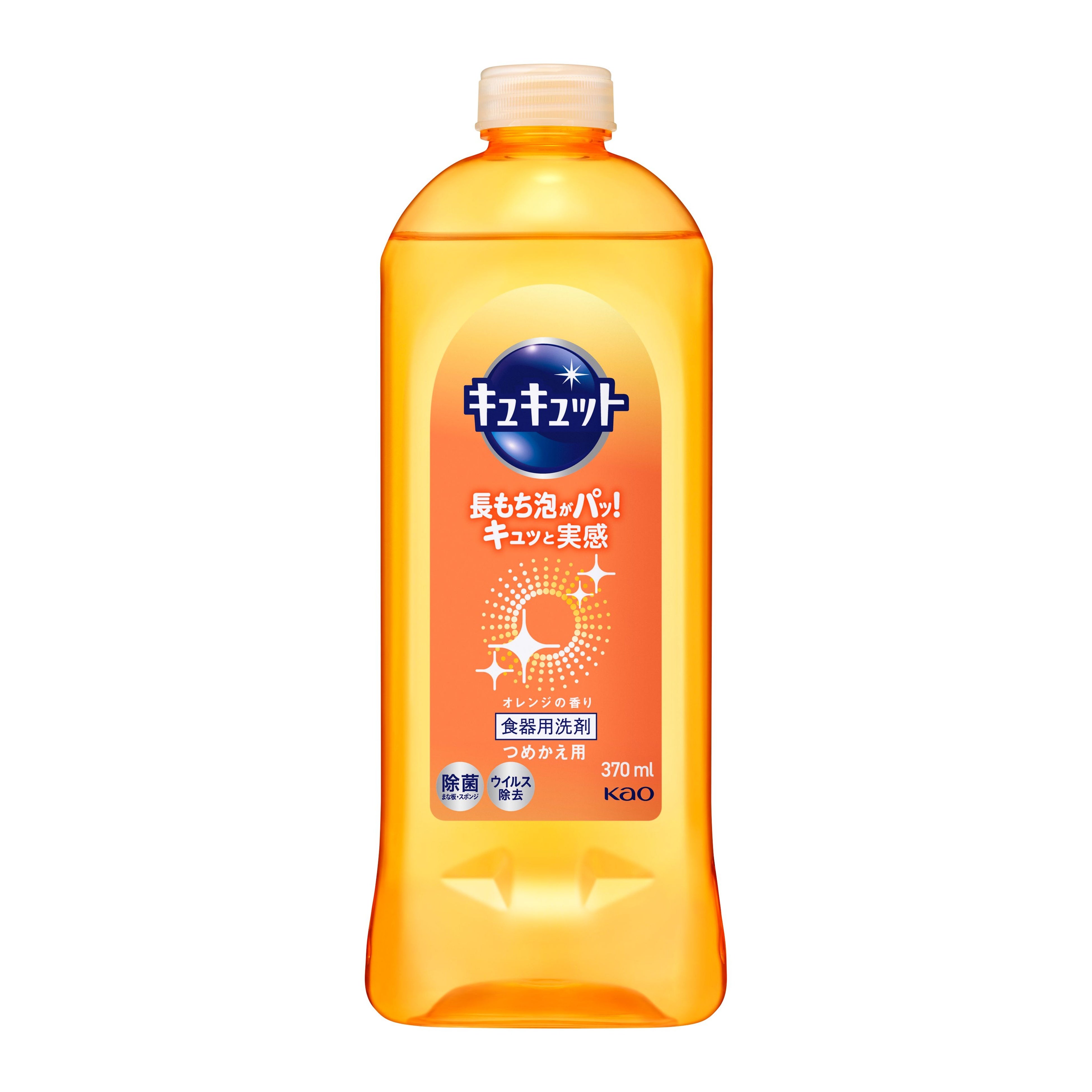 【内容】キュキュット独自のハイブリッド・ウォッシュ処方で、油汚れを細かく分解!長もち泡がすすいだ瞬間一気にパッ!キュッと実感!オレンジの香り。