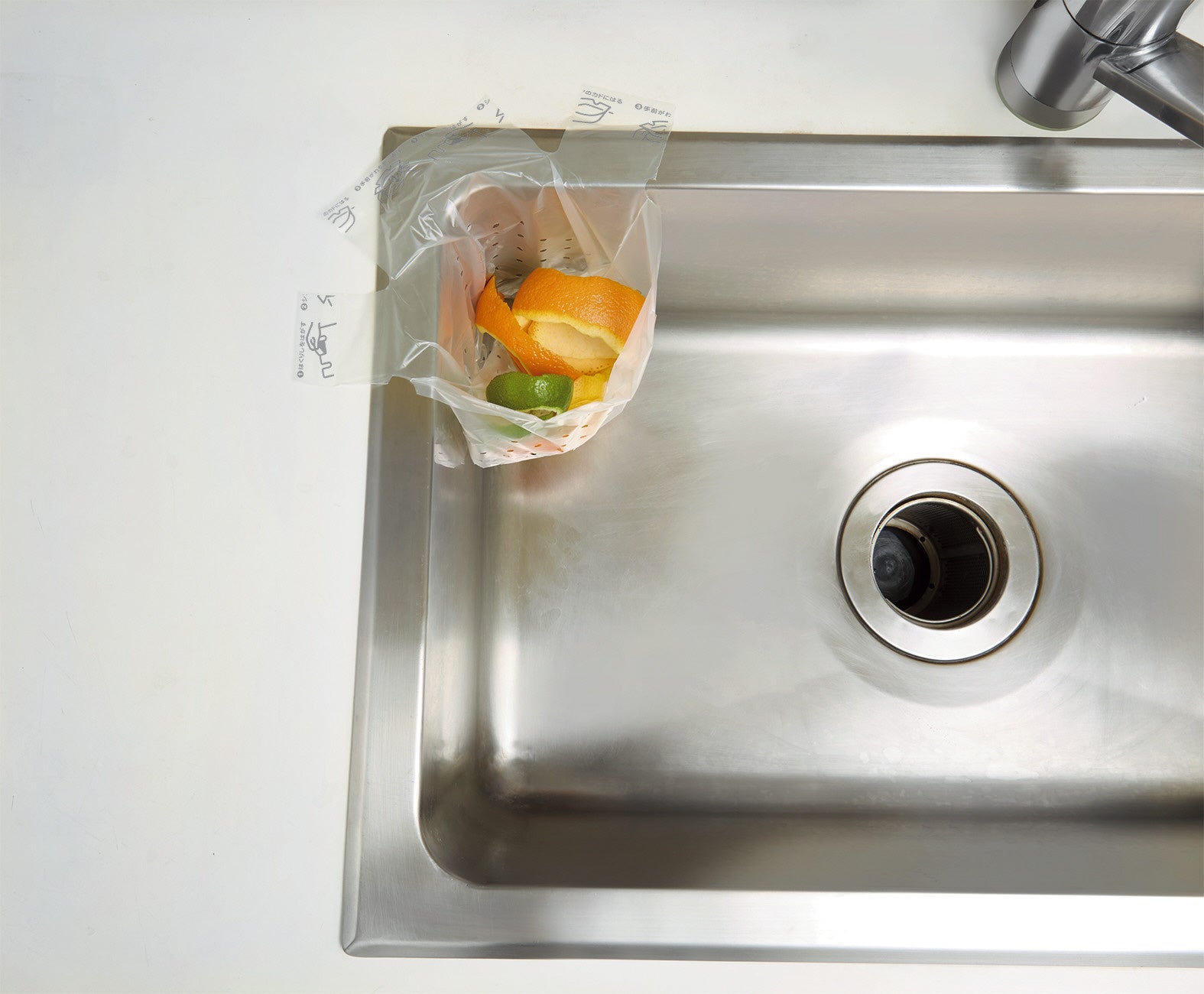(2)シンクに貼って浮かせる三角コーナーがいらない水切り袋(Sサイズ・Mサイズ)