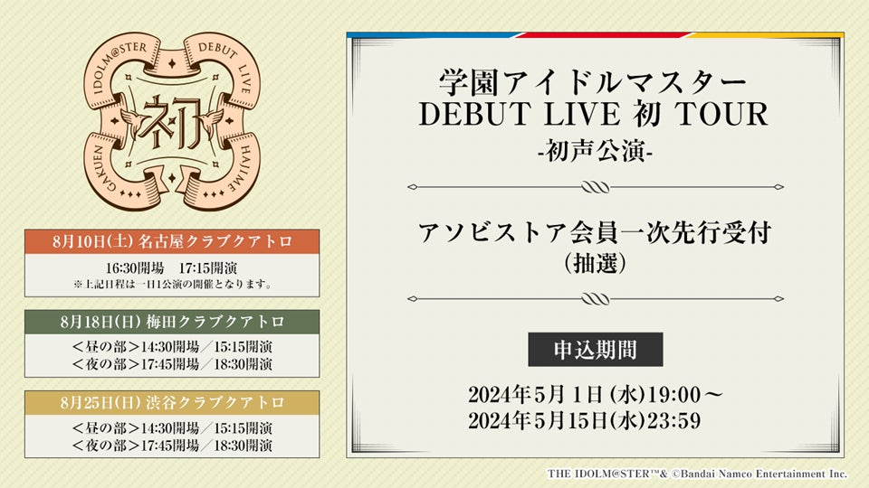 DEBUT LIVE 初 TOUR -初声公演-アソビストア会員 一次先行 予約受付中!