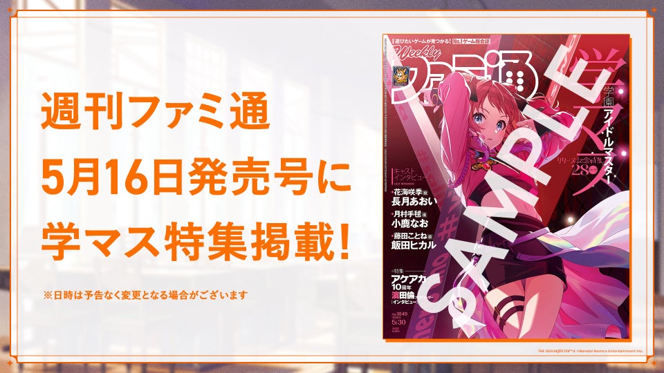 リリース予定日の5月16日(木)発売号の週刊ファミ通での学マスの表紙と特集が決定しました!
