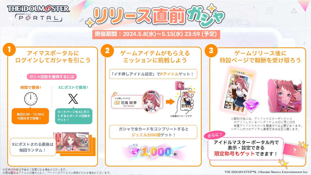 詳細は、アイドルマスターポータルのお知らせをご確認ください。